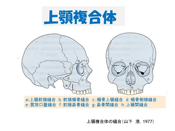 上顎は、これらの縫合部において複雑に関係しながら成長する。