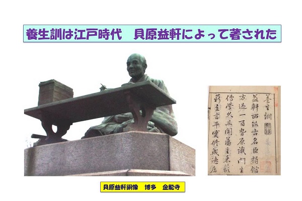 益軒は、生来病弱であったため、古今東西のさまざまな健康法を学び実践した。