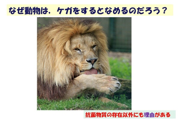 野生動物がケガをすると、しきりにその傷口を舐める。
