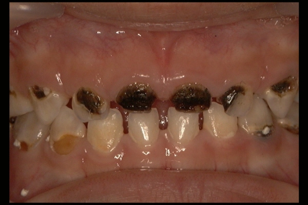 これは哺乳瓶う蝕が、上顎乳前歯に多発することからも明白だ。
