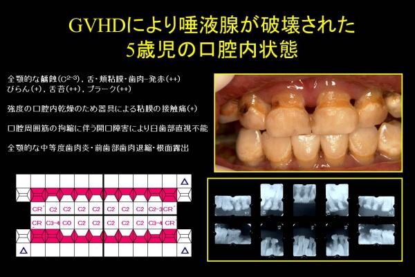 口腔内は強度の乾燥状態となり、短期間に多発性う蝕を引き起こす。