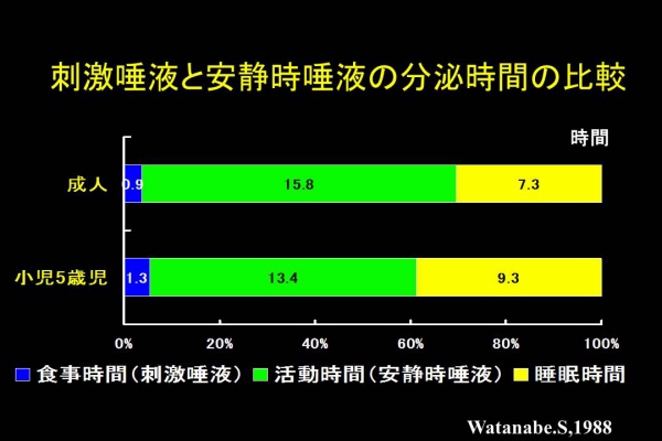 刺激唾液の分泌時間は、安静時唾液の1/10に過ぎないのだ。