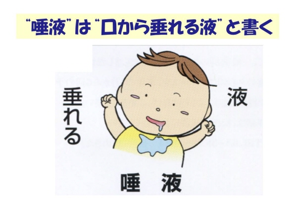 “唾液”の字は“口から垂れる液”を意味する。