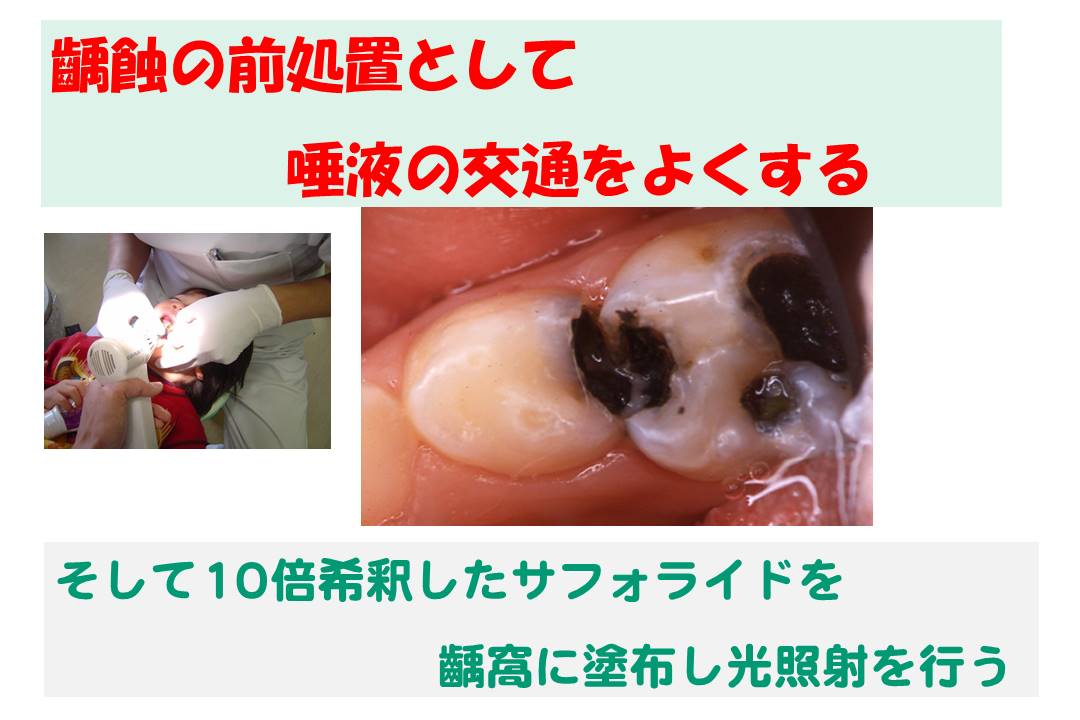 また、水で10倍希釈したサフォライドをう窩に塗布する。