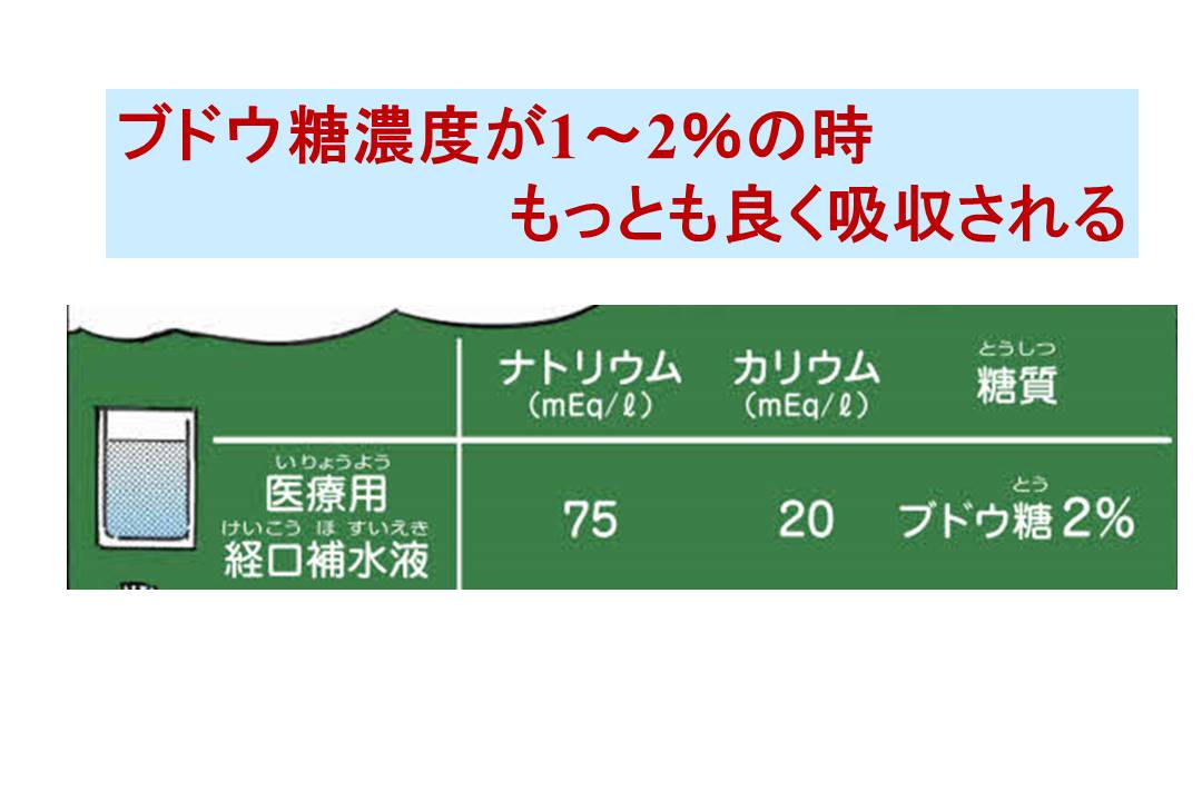 ブドウ糖の濃度が、1~2%の時に最も吸収されやすい。