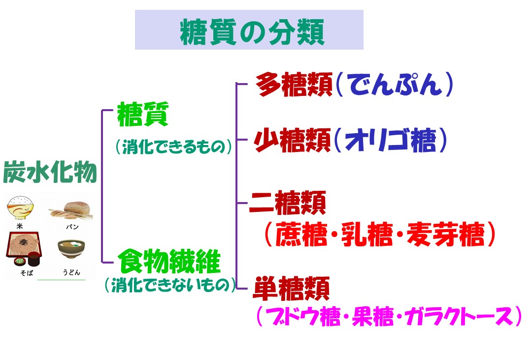 まず糖質は、炭水化物から食物繊維を引いたものを指す。