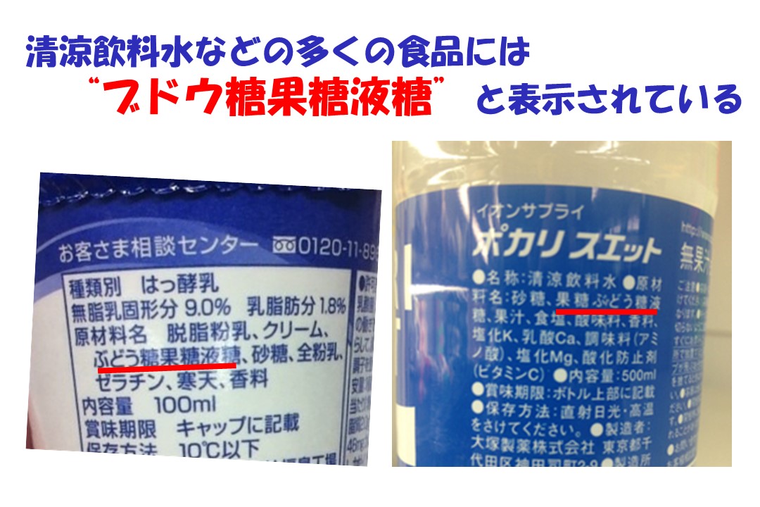 先ほどの清涼飲料水の表示も“ブドウ糖・果糖液糖”と書かれていた。