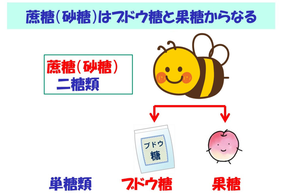 さて蔗糖が分解されるとブドウ糖と果糖になる。