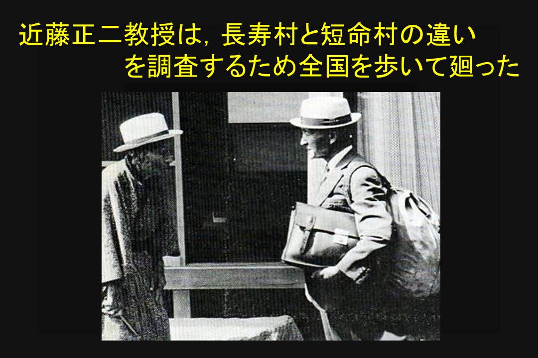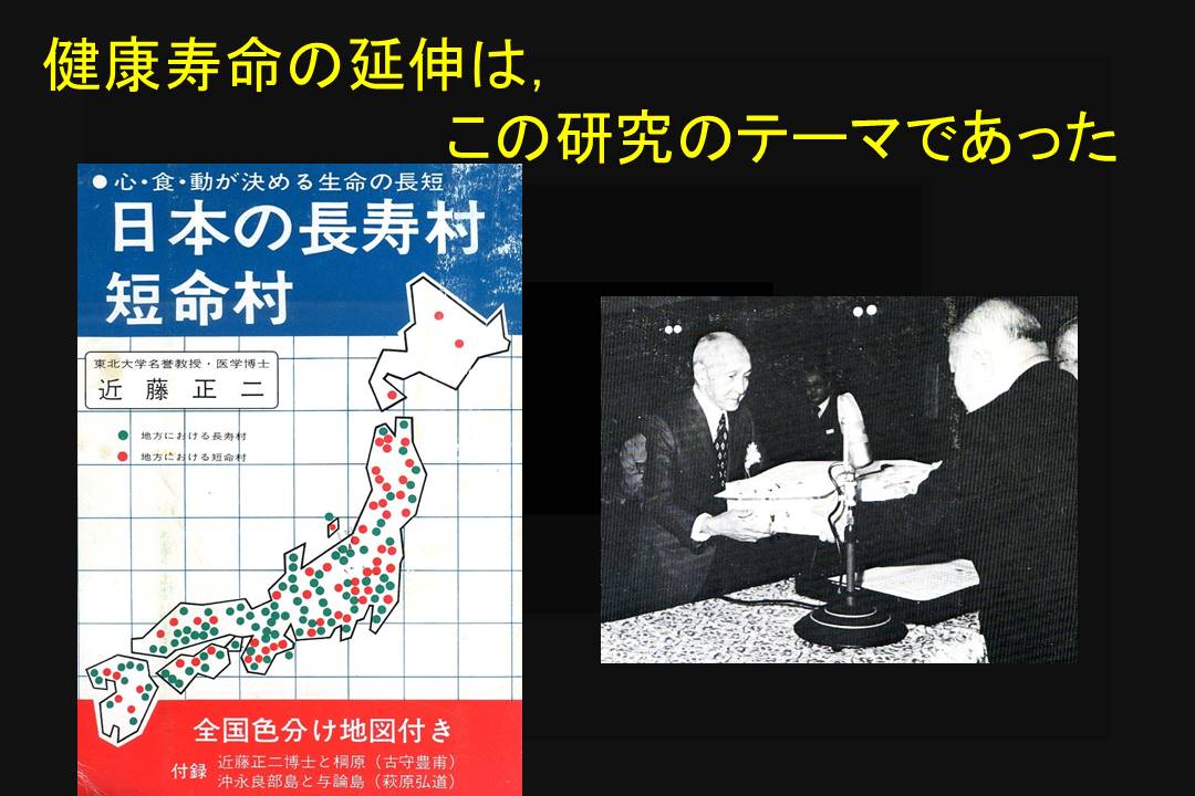 先生は、昭和10年頃から40年間、“長寿者の多い村と少ない村”の背景について調査をされた。