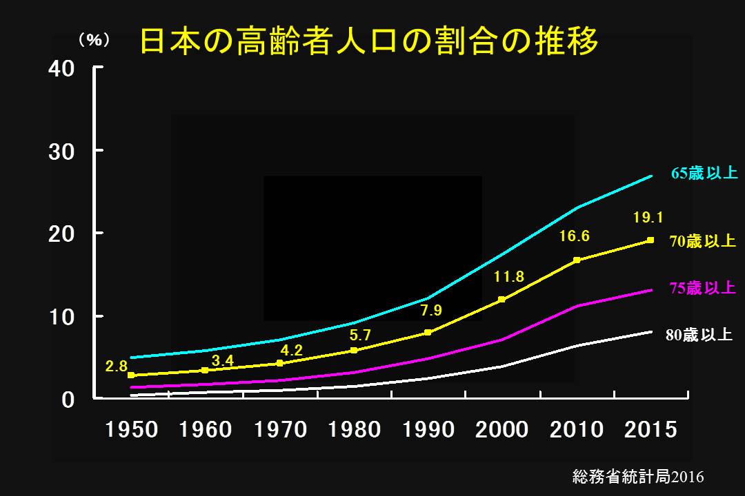 ちなみに現在(2016年)70歳以上の長寿率は19.2%であるが、