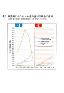 これは35~44歳の業務別の歯科医師数の推移ですが、1990年台初頭を境に急激に開設数が減っております。