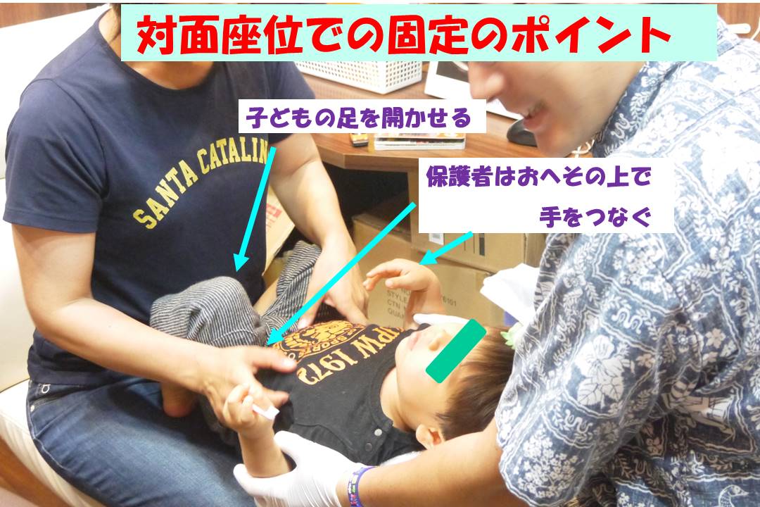 こうすれば子どもは、術者の手の動きを遮ることができない。