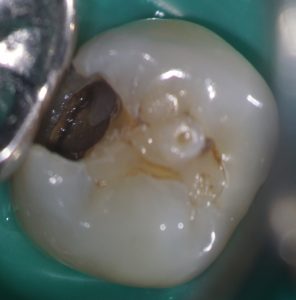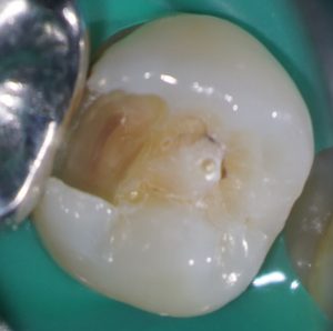 私はこういった症例の治療をする場合、う蝕を取り除き、