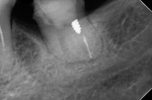 「破折ファイルの除去はとても難しいのです。他院で勧められたように、抜歯してインプラントになるかもしれません。しかし、運よく除去できて保存できるかもしれません」
