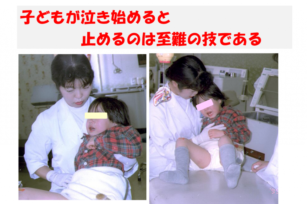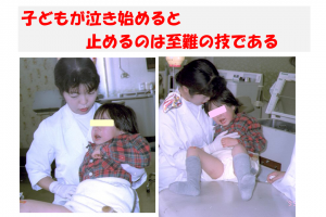 乳幼児歯科健診においても、保護者は泣きに気をとられ話を聞く余裕がなくなる。