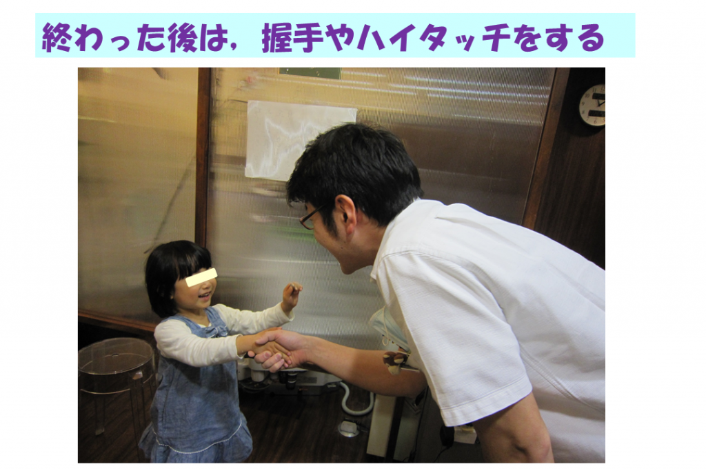 さらに、握手やハイタッチを行って帰す。