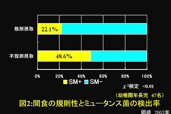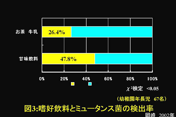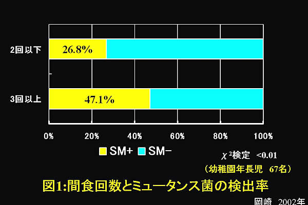 そんなことを考えて、幼稚園児を対象としてミュータンス菌存在の有無と生活習慣について調べてたことがある。(注2)