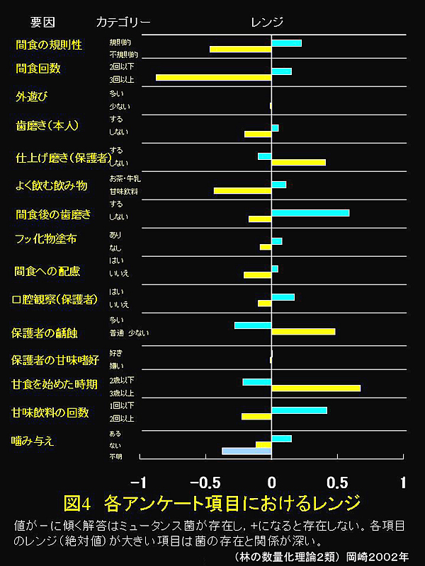 (図1・2・3・4)予想通り、ミュータンス菌の感染には間食習慣が大きく影響していた。