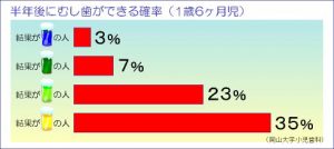 ※図2:1歳6か月児において齲蝕活動性が高い小児ほど、半年後に齲蝕が初発するものが多い。