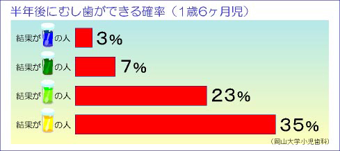 たとえば、1歳6か月児歯科健診のスクリーニング法として、公衆衛生的に利用し、ハイリスクの小児に重点的に指導することにより齲蝕予防の実をあげてきた。(図2)