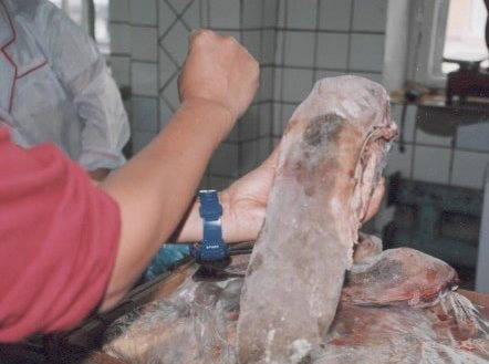 図5:ウシの舌。二の腕と比べるといかに大きいかがわかる(モンゴルにて撮影)