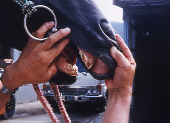 調教師は、食欲が落ちると、まず歯を診る。