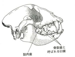 一般に肉食動物は、裂肉歯(れつにくし)と呼ばれる歯がある。
