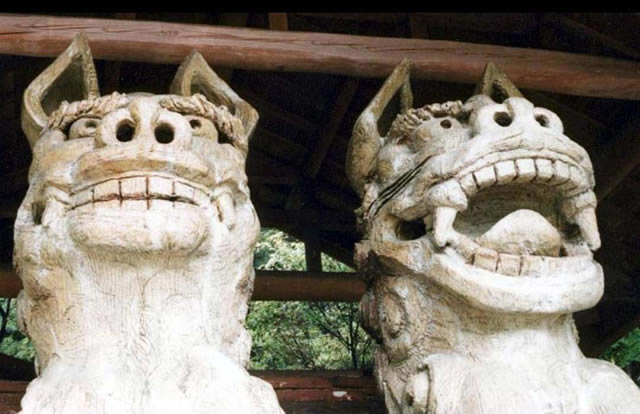 図1:“阿吽の像”。右は口を大きく開き、左は口を閉じている。
