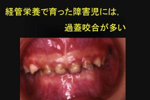 図3:経管栄養の障害児にも過蓋咬合が目立つ。