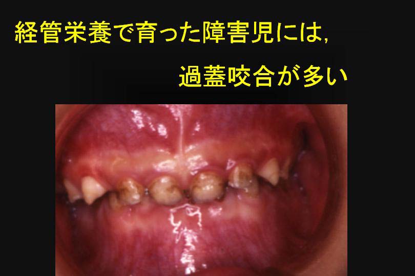 また出生時より経管栄養で育ってきた障害児にも過蓋咬合が多い。(図3)