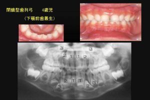 図6:乳歯の閉鎖型歯列弓は、下顎永久側切歯は、舌側へ萌出する可能性が高い。