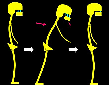 さて直立二足歩行では、脊柱の上に重い頭蓋骨があるので、極めて不安定な状態にある。(参考3)