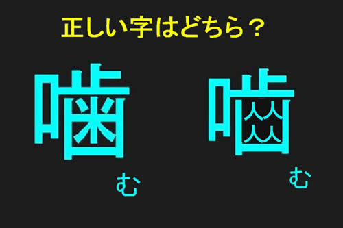 ロの横に歯の字を使う“噛む”と、歯の中に人の字を4つ入れる“噛む”(←ソフトによっては字がありません。失礼!)とがある。