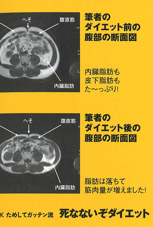 ご丁寧に、ダイエット前後の腹部断面のMRI写真まで載せている。(図4)
