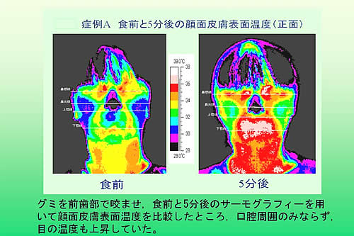 ところがだ・・・・・・。不思議なことに眼の温度も上昇していた。前歯で噛むと、どうしてこのようなことが起こるのか?当初、これは何かの間違いだと思い、研究はそこで中断した。